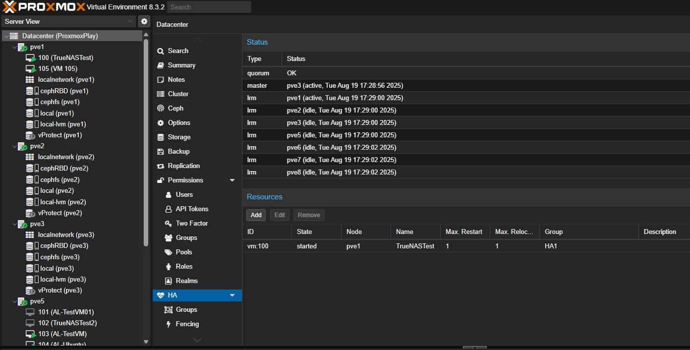 It’s as easy as that. At this point you can look at taking advantage of Proxmox VE’s other features, such as HCI (Hyper Converged Infrastructure) and HA (High availability). With just 3-5 nodes, you can have a cluster of Proxmox hypervisors, managed through a single interface, with scaled-out replicated storage utilising CEPH providing the redundant storage for HA mode. In the event of an entire server going down, the running VMs data is still safe and available, the VMs can spin up on a Proxmox host with spare capacity, with minimal downtime. No need for reserve of vGPU licences, as the licence server only cares about the number of currently online VMs.